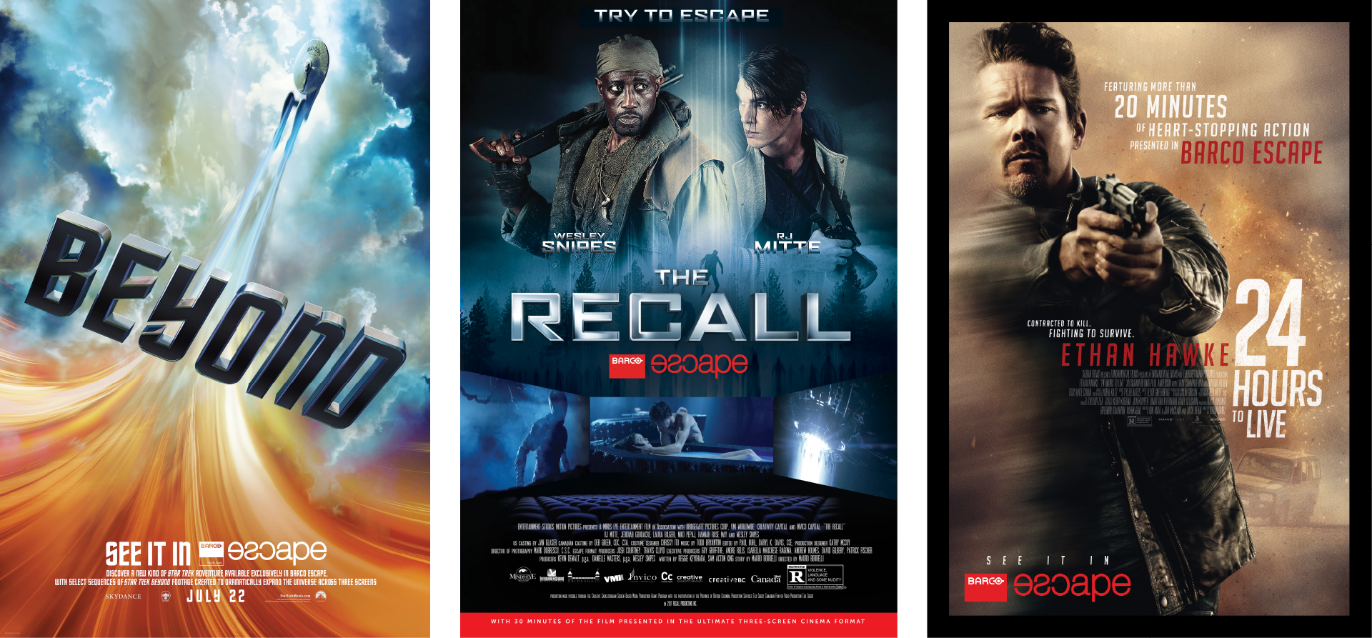 Designed various branding applications for use on a range of marketing and promotional materials to support the brand, its partnerships and its products. Barco Escape technology provided moviegoers with an enhanced panoramic viewing experience.